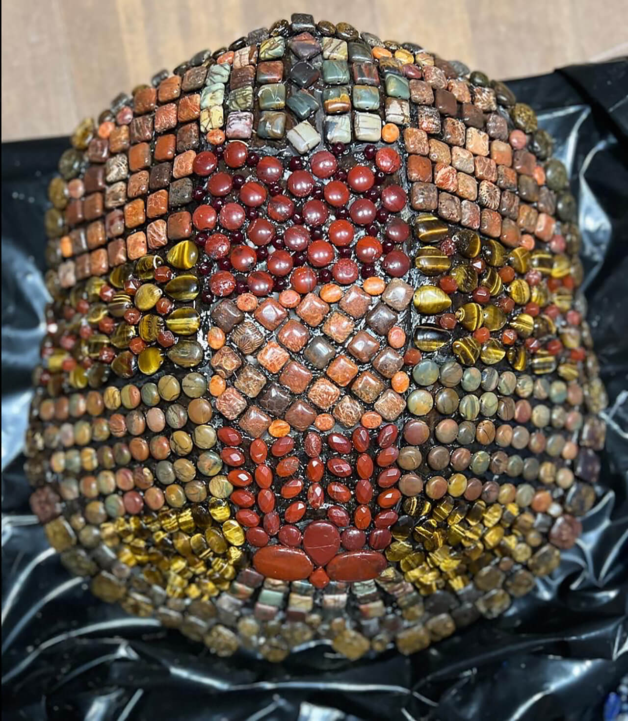 Turtle shell with jasper, tiger eye, and carnelian $175.00 Turtle shell with jasper, tiger eye, and carnelian quantity Add to cart 13″x12″ turtle with fossil jasper, Picasso jasper, tiger eye, & carnelian. Categories: Current Mosaic Skulls & Turtle Shells for Sale, Turtle shells Tag: For sale